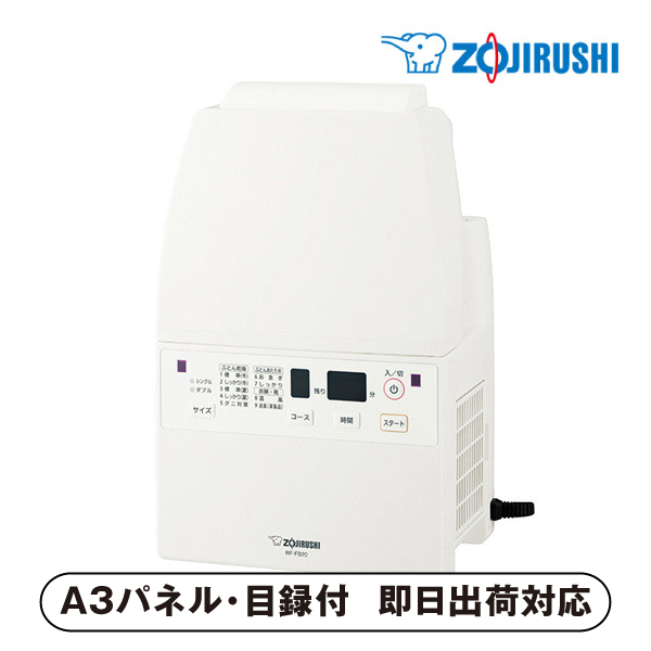 ・象印史上最大風量※!ツインファンでスピード乾燥!※RF-F型シリーズとして(当社調べ) ・マット&ホース不要!セットも片付けもラクラク! ・アタッチメント不要!衣類や靴の乾燥に便利な角度調整ノズル ・残り時間を1分単位で表示する≫「デジタルタイマー」
