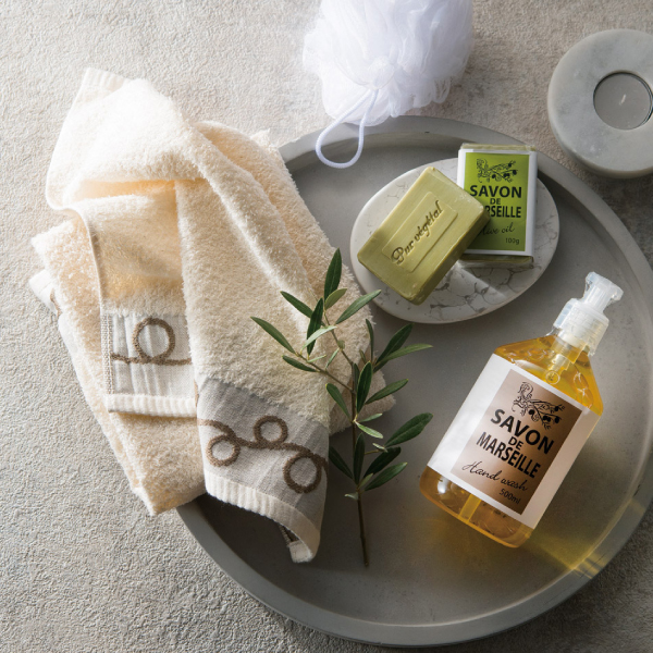 マルセイユで作られたフランス製のソープと有機タオルのセットで優しい時間を贈る。 マルセイユ石鹸で知られるフランスのマルセイユの植物性オイルを使用した、肌にやさしいハンドソープとオリーブ石鹸に、有機精錬イソフラボン加工を施した肌の健康と地球環境に配慮した、優しいセットです。