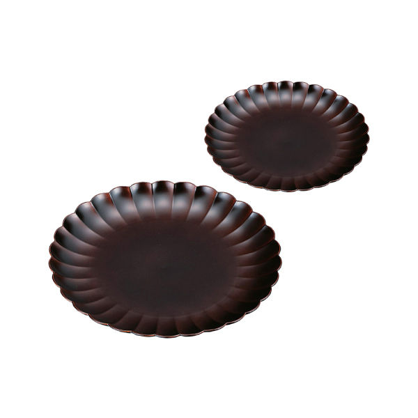 木目模様を生かした自然な風合いと、深みのある溜色の山中塗のフラワープレート大小ペアセット。ひと皿で華やかなちらし寿司や、サラダやパスタなど洋食や和食にも合います。お祝い用はもちろん、落としても割れにくいため日常使いにもおすすめです。気軽に漆器を楽しむことができ、毎日の暮らしに優しい器です。電子レンジと食洗器にも対応。