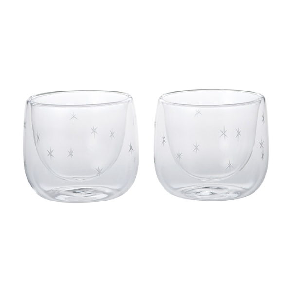 切子細工の星柄がさり気ない耐熱ガラス製のデザートカップ。中身が浮いて見える二重構造のカップは、耐熱・保温・保冷性に優れたアイテムです。冷たいデザートはもちろん、耐熱ガラスなので熱々のホットドリンクまで幅広く使えます。 友人やご家族へのギフトにいかがでしょうか。