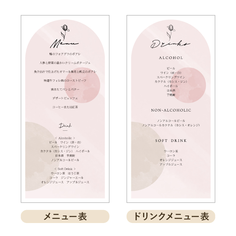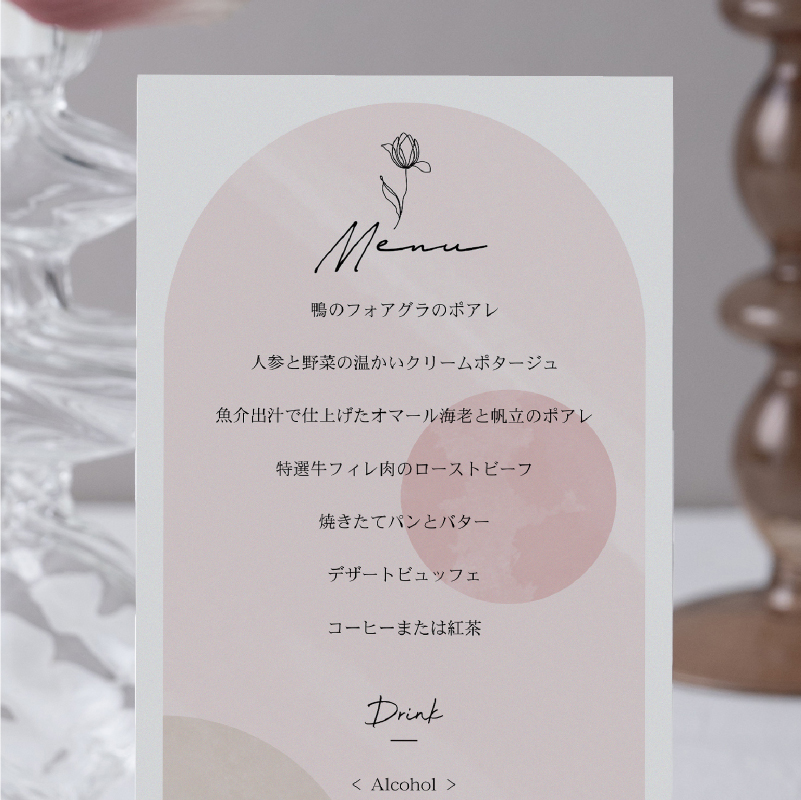 シアーフロアート シルキーピンク 結婚式 メニュー表