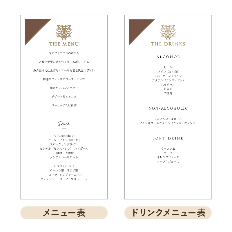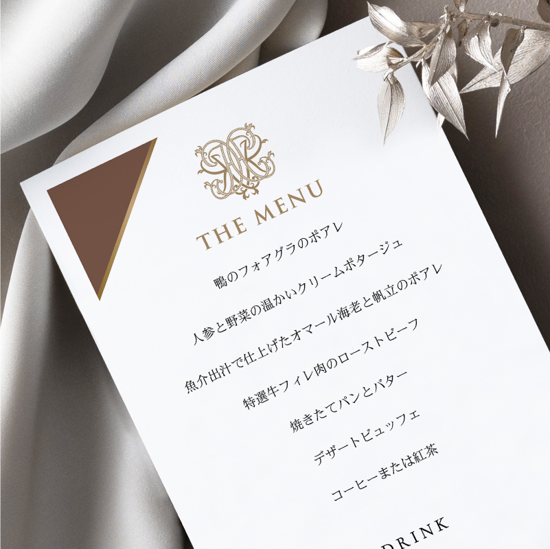 ノーブルクイーンズ ベイクドブラウン 結婚式 メニュー表