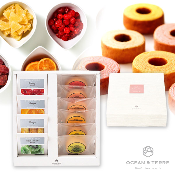 みずみずしさを残したドライフルーツと、太陽の恵みをぎゅっと一層一層に詰め込んだフルーツバームクーヘンのセットです。ドライフルーツは「チェリー」「オレンジ」「マンゴー」「キウイフルーツ」の4種類。バームクーヘンは「栃木県産 とちおとめ苺バーム」「山形県産 さくらんぼバーム」「山梨県産 白桃バーム」「北海道産 赤肉メロンバーム」「沖縄県産 マンゴーバーム」「山形県産 ラ・フランスバーム」の6種類の彩り豊かな詰め合わせ。フルーツの美味しさを楽しめる贅沢なスイーツセットです。