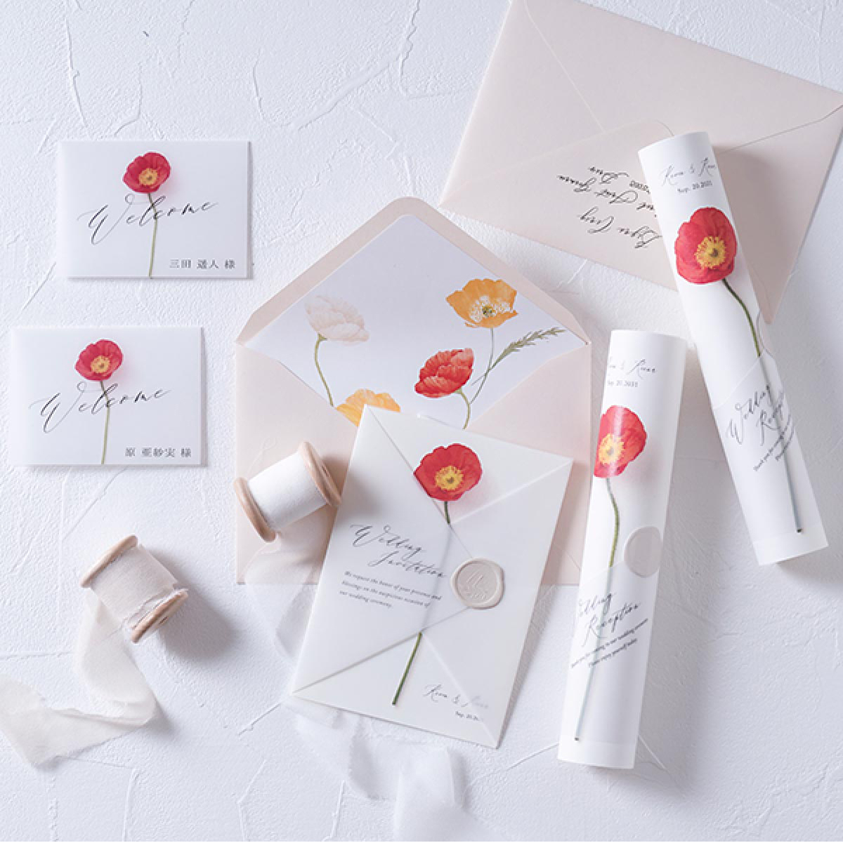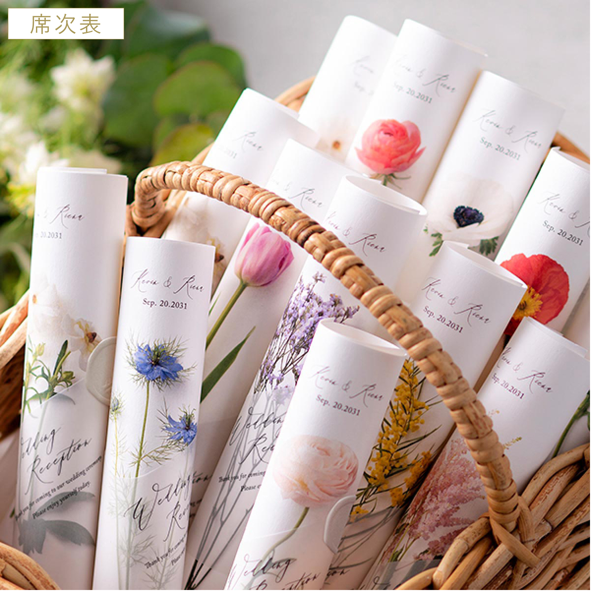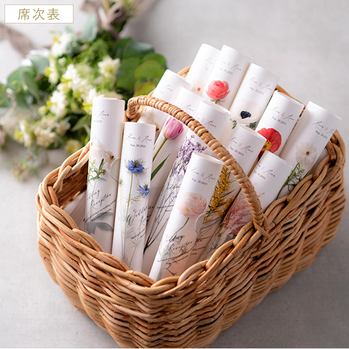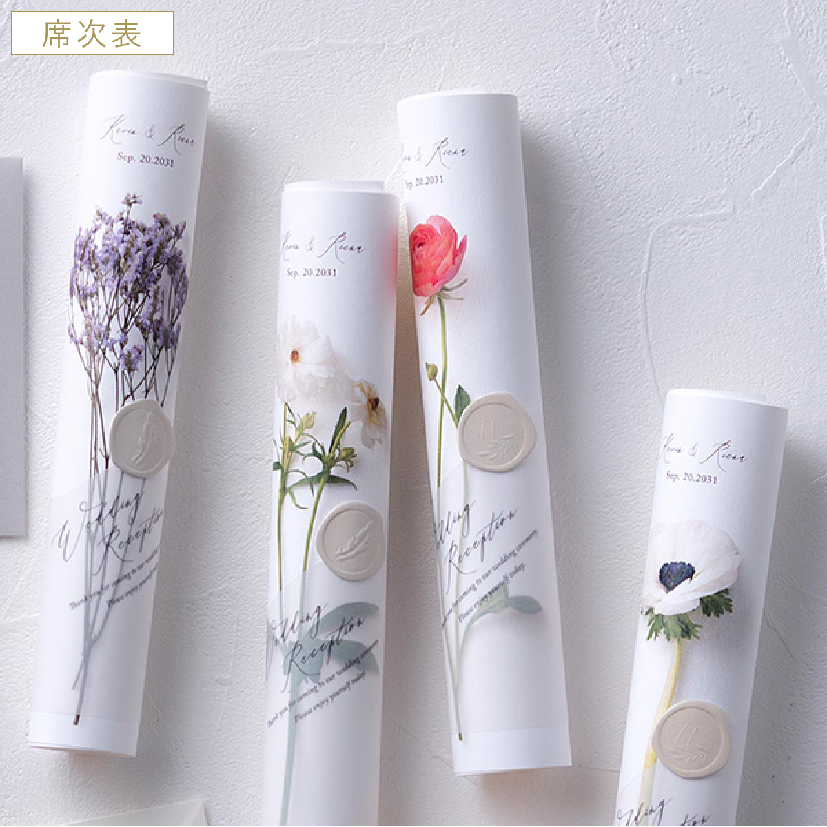 ナチュラル婚の方もエレガント婚の方も、お気に入りの花でコーディネート。一輪の花をトレーシングペーパーで包み込むことで、花の贈り物のよう。ゲストへの感謝や愛情を一緒に込めて…