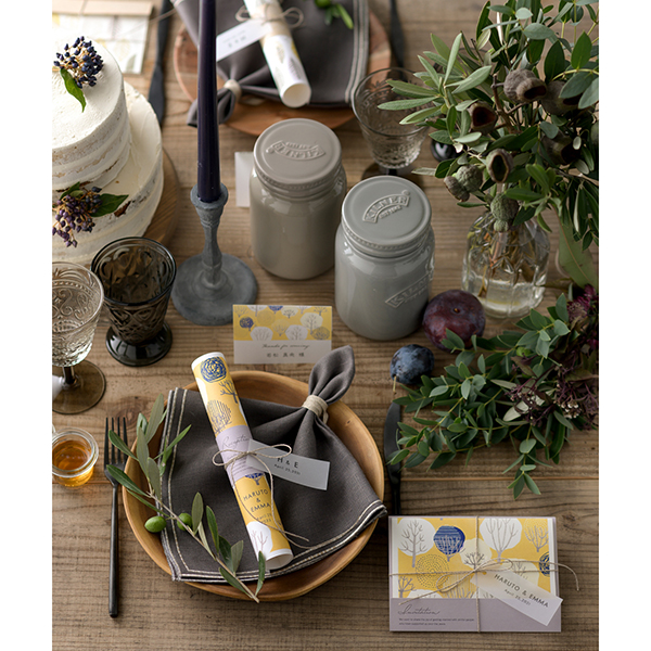 北欧の豊かな自然や植物をモチーフにした、洗練されたデザインがおしゃれなアイテム。 おふたりの特別な一日に、ハイセンスで華やかな彩りを添えて。