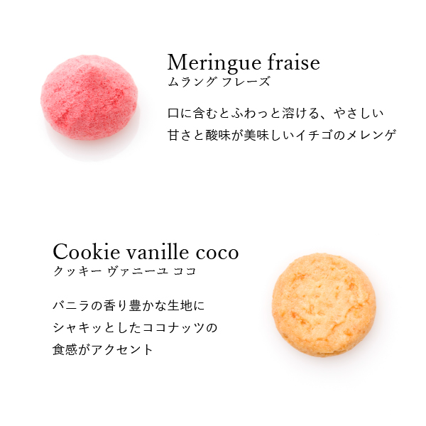 | 商品内容 | 約200g(レザン、アールグレイ、マカロン ラスク プティ、ショコラ、ムラング フレーズ、ヴァニーユ ココ、ヴァニーユ、ショコラ オ ザマンド、ヴィエノワ【9種類】) |