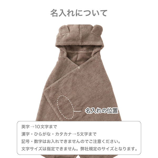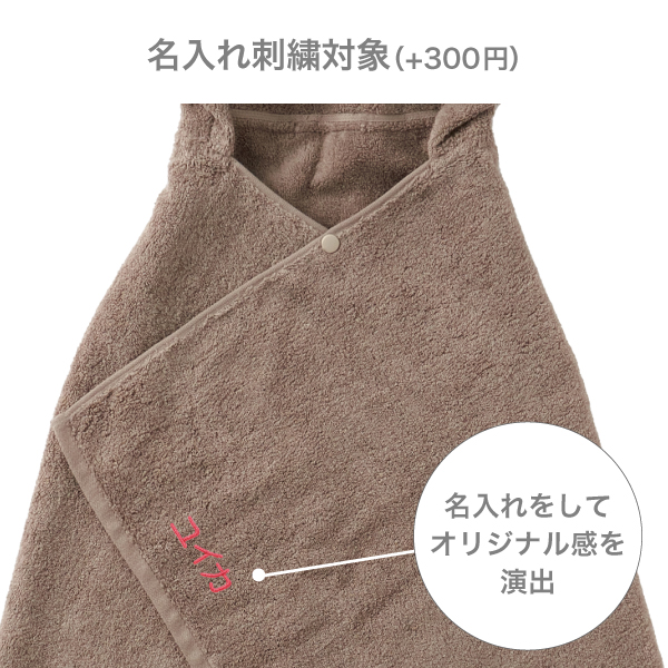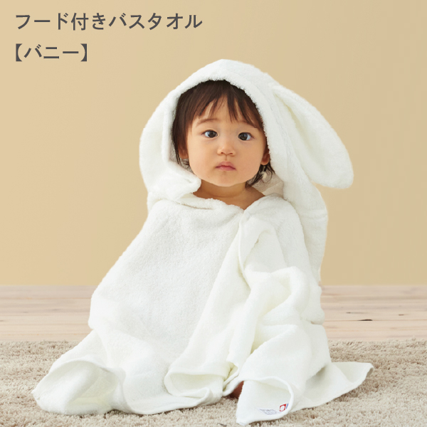 フード付きバスタオルは、日本一のタオルの生産地今治で生産し、デリケートな赤ちゃんの肌にも優しいやわらかい肌触りが特徴です。