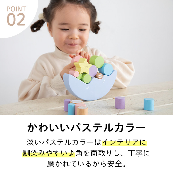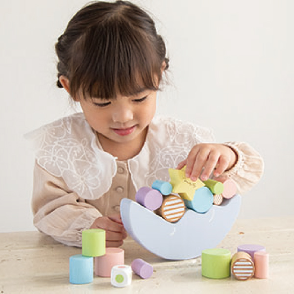 バランスを考えながらブロックを積んでいくうちに、乗せる位置と大きさからつり合いの原理を自然に覚えることができます。