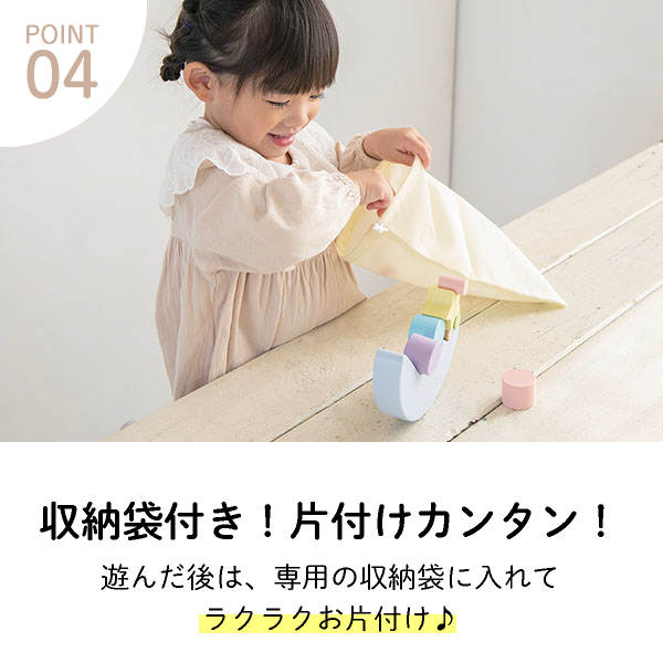 円柱ブロック(大・中・小)×各5 星ブロック・お月さま・サイコロ・収納袋×各1 |