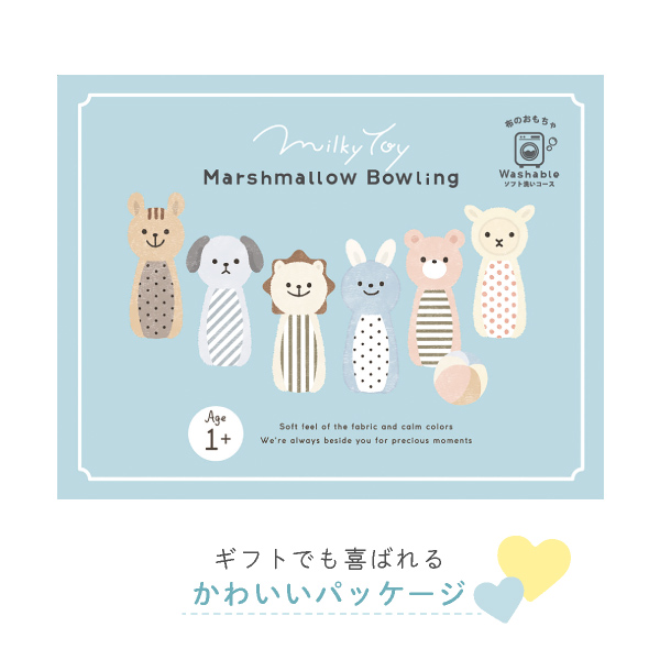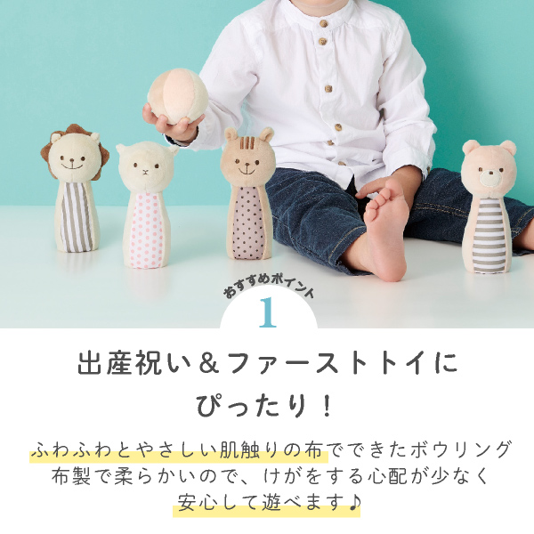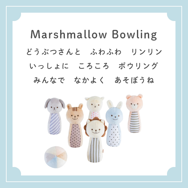 出産祝いや、ファーストトイにぴったりなふわふわな肌触りが心地良い「マシュマロボウリング」