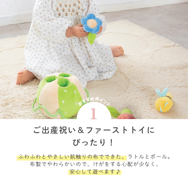 ・ボール×1 ・みつばちラトル×1 ・青いお花ラトル×1 ・赤いお花ラトル×1 |
