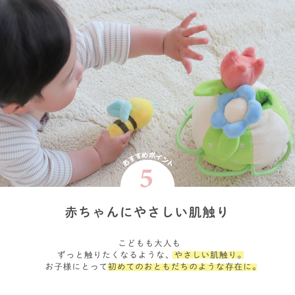 みつばちラトルがとってもキュート!お子さまの成長を楽しくサポートする布おもちゃ「ふりふりみつばち」。