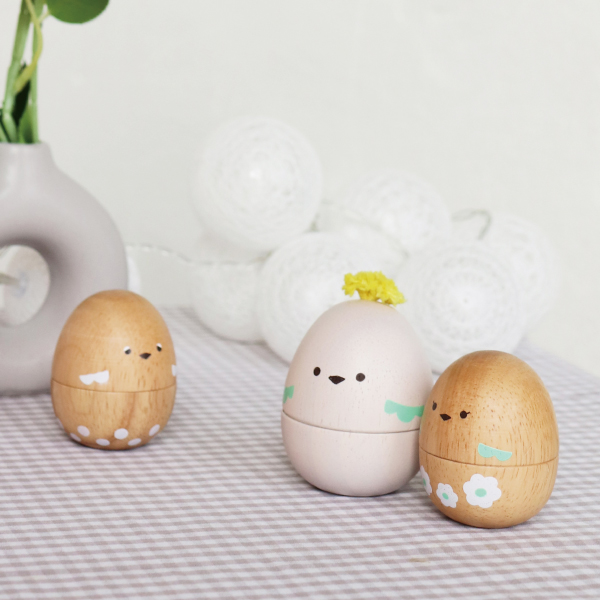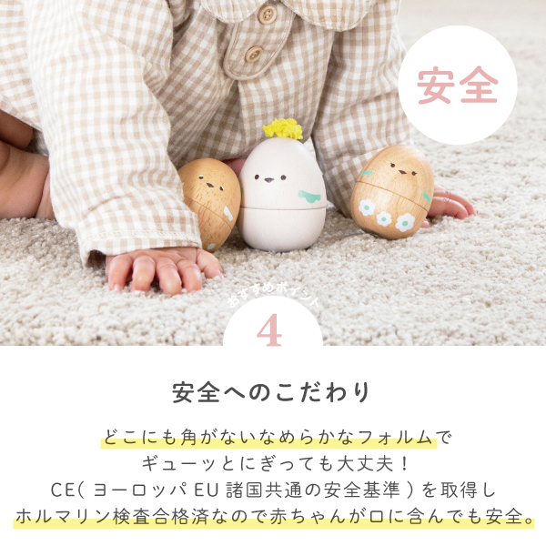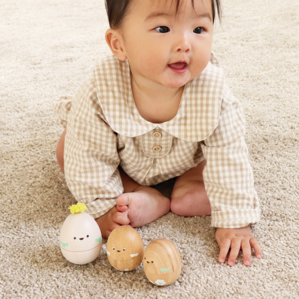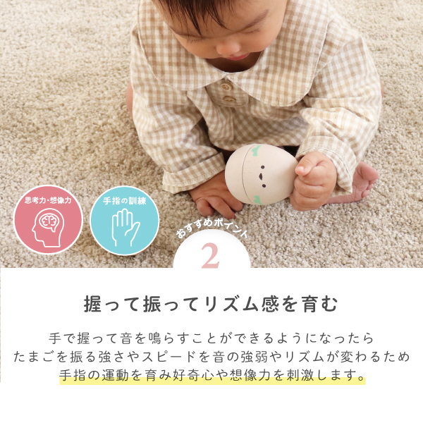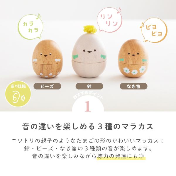 小さな手でも握りやすいフォルムで、リズムを刻んでシャカシャカ♪たまご型のかわいいマラカスです。