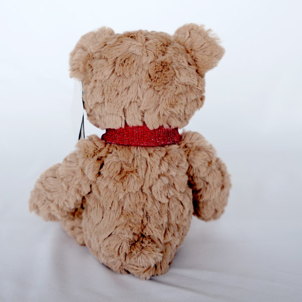「トゥインクル(きらめく、きらきら輝く)」と名付けられたベアは、星が散りばめられたようなきらきら糸を織り込んだマフラーを巻いています。