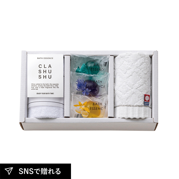「CLA SHU SHU バスエッセンスセット」は、シンプルでモダンなデザインとフレッシュな香りが楽しめる入浴剤セット。ミルク色のお風呂で心地よいリラックスタイムを演出し、日常のバスタイムを贅沢で快適に彩るギフトです。