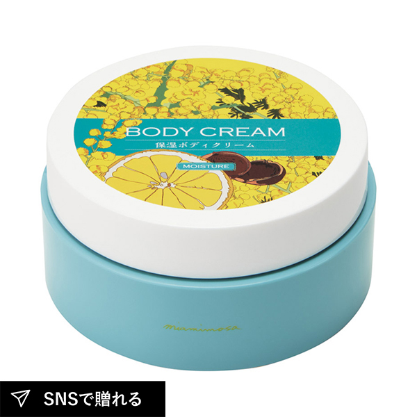 ミモザ精油(香料)がふんわりと柔らかく香る、するすると伸びる滑らかな使い心地のボディクリーム。保湿成分のヘーゼルナッツオイルとアロエベラエキス配合で、しっかり潤うのにべたつかず、柔らかな肌に導きます。