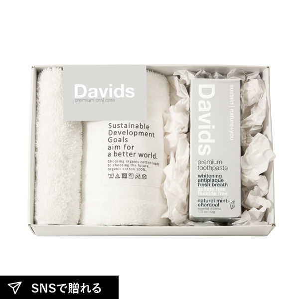 Davids〈チャコール〉 歯磨き粉とフェイスタオル1P・ハーフハンカチ1P