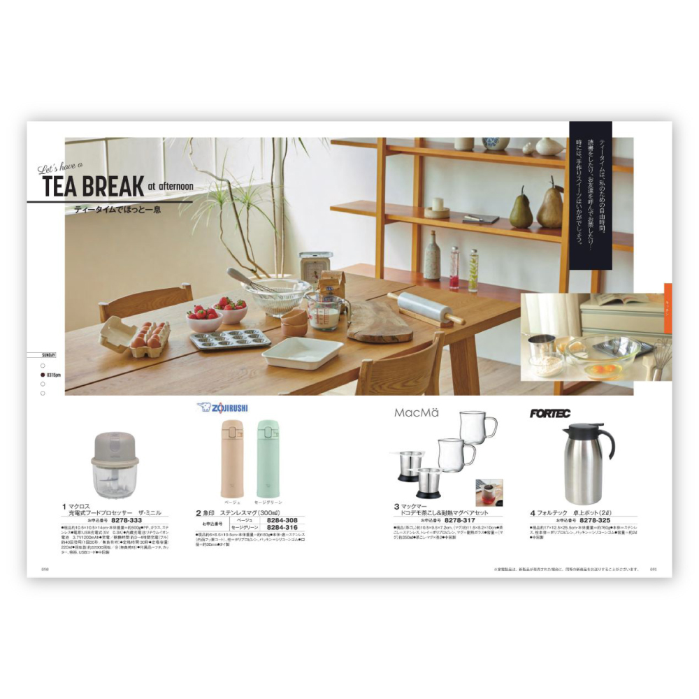 テーブルウェアやインテリアアイテムでは、スタイルごとに分かれて掲載されているので、お好みのスタイルより吟味しながら商品を選ぶことができます。