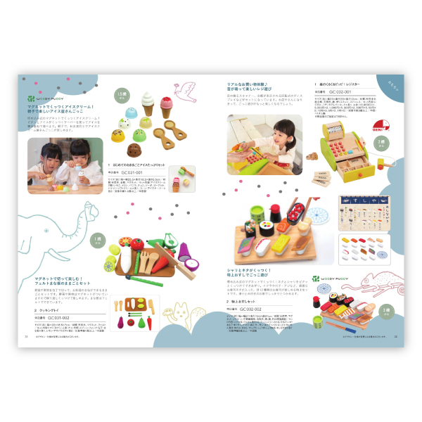 集中力や想像力を育む知育おもちゃや肌触りのいいベビーウェア、マルチケット。ママがうれしいオリジナルレシピ付き離乳食セットやおしゃれなキッチンツール、スタジオの撮影券やお子さまと一緒に参加できるレッスンなどを幅広くご用意。