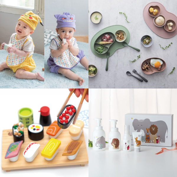 集中力や想像力を育む知育おもちゃや肌触りのいいベビーウェア、マルチケット。ママがうれしいオリジナルレシピ付き離乳食セットやおしゃれなキッチンツール、スタジオの撮影券やお子さまと一緒に参加できるレッスンなどを幅広くご用意。