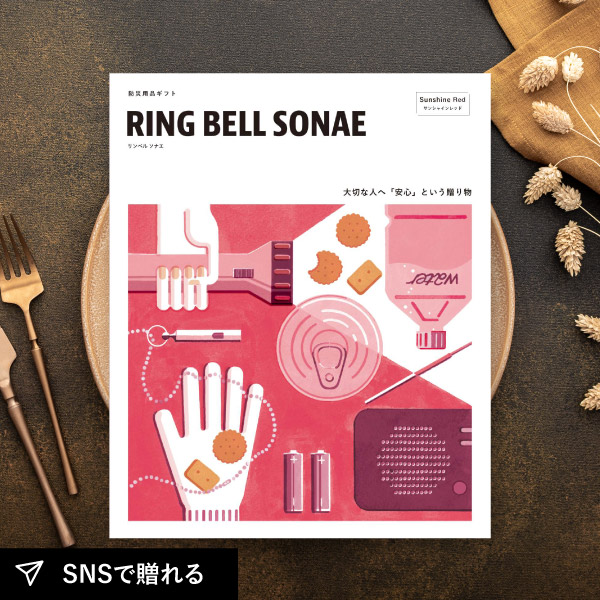 自然災害が多く発生する国で暮らす私たちが安心して生活できるように、厳選した防災グッズや備蓄食品を集めたカタログギフトです。防災用品ギフト「RING BELL SONAE(リンベル ソナエ)」は、あなたの大切な人を想う温かい気持ちをギフトに込めて「安心」と「選ぶたのしみ」を贈ることができます。