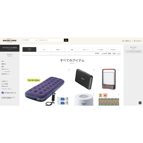 自然災害が多く発生する国で暮らす私たちが安心して生活できるように、厳選した防災グッズや備蓄食品を集めたカタログギフトです。防災用品ギフト「RING BELL SONAE(リンベル ソナエ)」は、あなたの大切な人を想う温かい気持ちをギフトに込めて「安心」と「選ぶたのしみ」を贈ることができます。