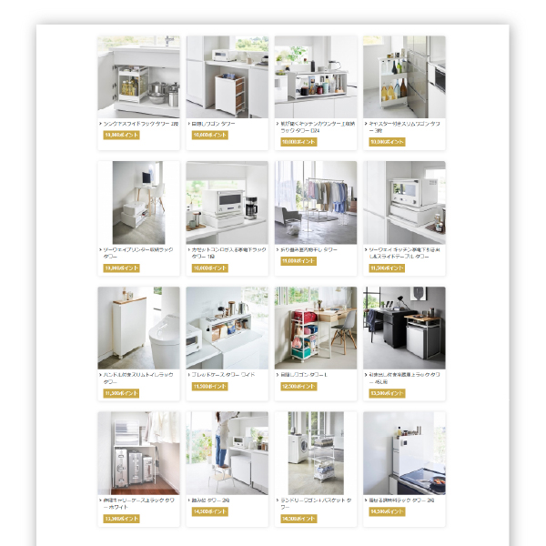 キッチン・バス・リビングなど、暮らしのさまざまなシーンを彩るアイテムの中から、お好きな商品をポイント内で自由にお選びいただけます。