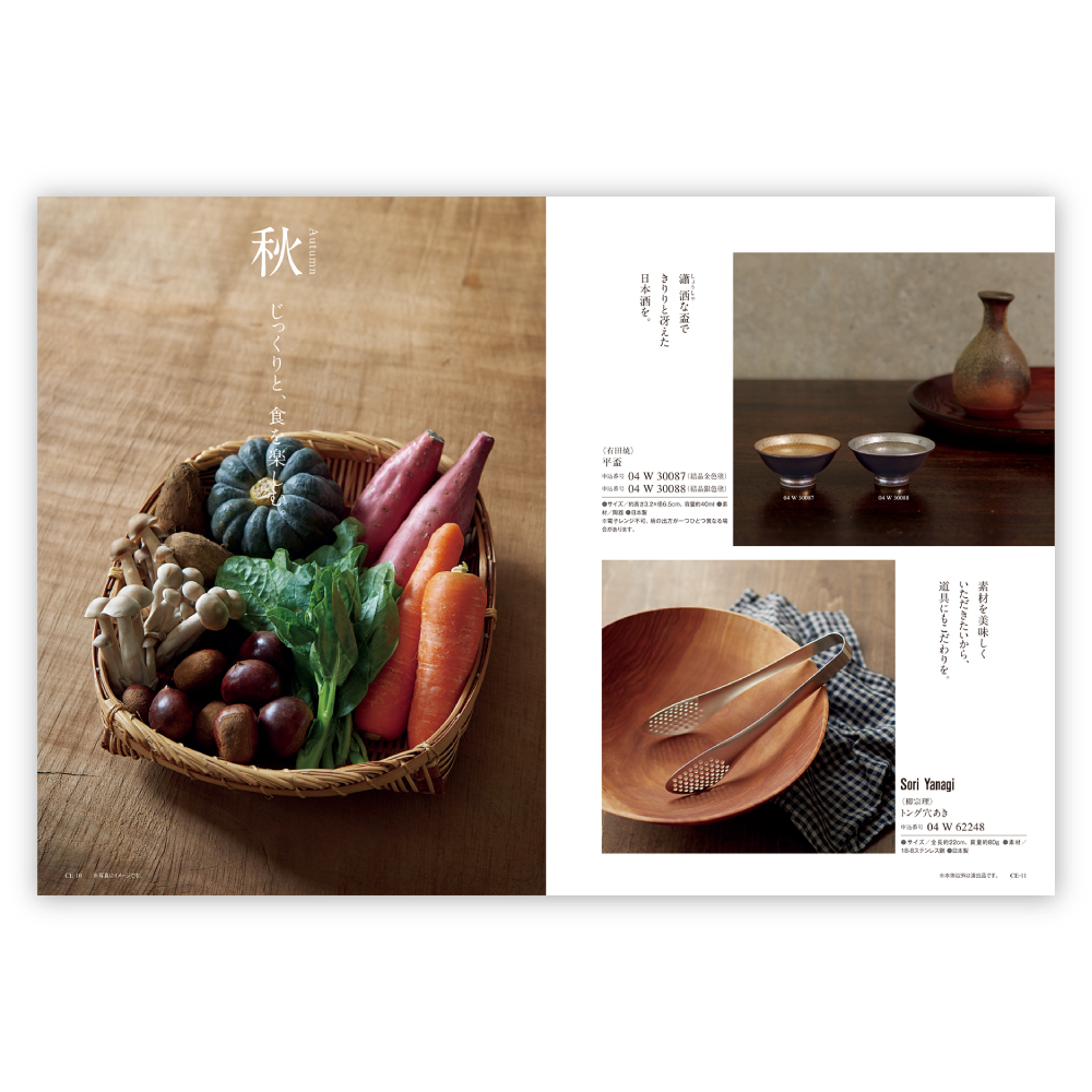 春夏秋冬にあわせたアイテムをお選びいただけ、春のうきうきする陽気の中で使いたくなるタケダブラシの携帯用リップブラシ、夏にぴったりのペアビヤーグラスセットなどをご用意。秋のおいしいお米をよそうクシメ 飯椀ペアや、冬の乾燥を防ぐメルヴィータのハンドクリームセットなど、誰もが欲しくなるような商品を取り揃えたカタログギフトです。