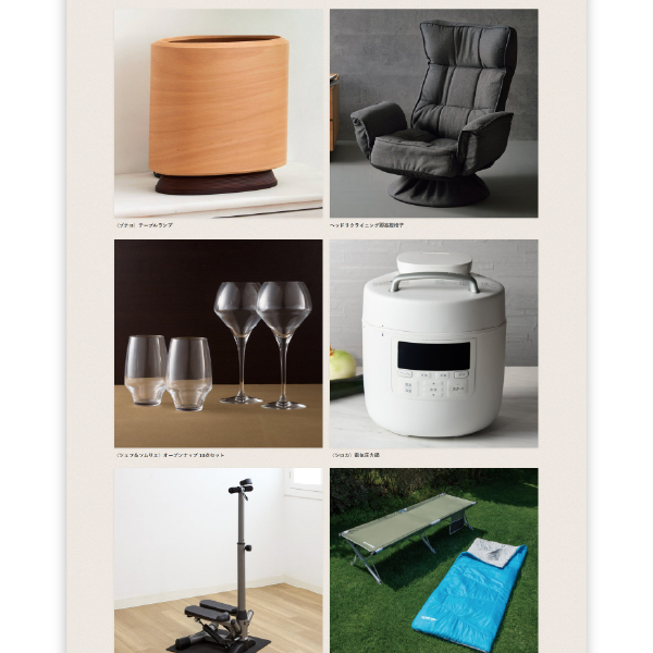 ホテルニューグランドのランチペアご招待券や、毎日をより上質にしてくれるタオル、千疋屋総本店季節の果物詰合せや活松葉がになど、まるで百貨店を訪れたかのような上質なアイテムばかり。