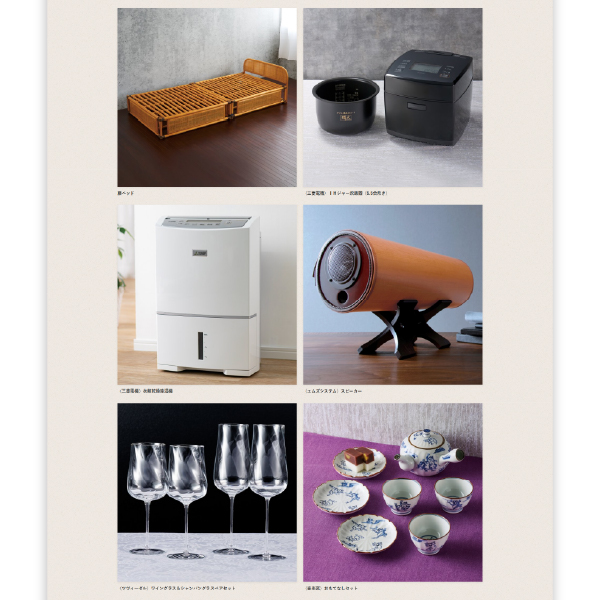 ウェッジウッドをはじめとするブランドの食器やダイヤモンドプラチナネックレス、毎日をより上質にしてくれるタオル、贅沢な体験ギフトなど、まるで百貨店を訪れたかのような上質なアイテムばかり。