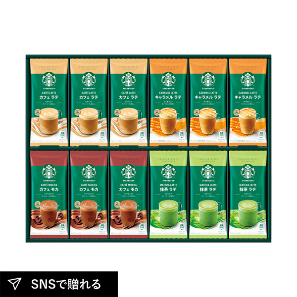 | プレミアムミックスカフェラテ(18g)・プレミアムミックスキャラメルラテ(23g)・プレミアムミックス抹茶ラテ(24g)・プレミアムミックスカフェモカ(22g)×各6 |