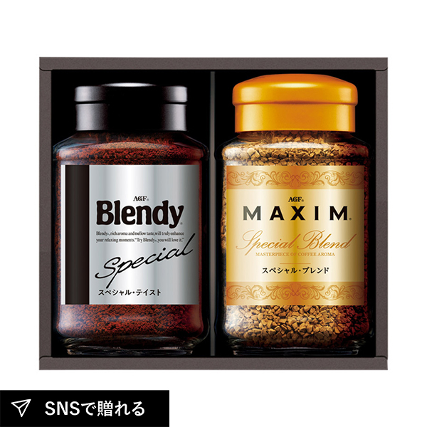 ストレートで楽しむマキシムと、ミルクをたっぷり入れて深いコクが味わえるブレンディをセットにしたインスタントコーヒーのバラエティギフトです。手軽に本格的な味を楽しめるため、毎日のひとときの贅沢な時間や、大切な方への贈り物としても喜ばれる上質なセットです。