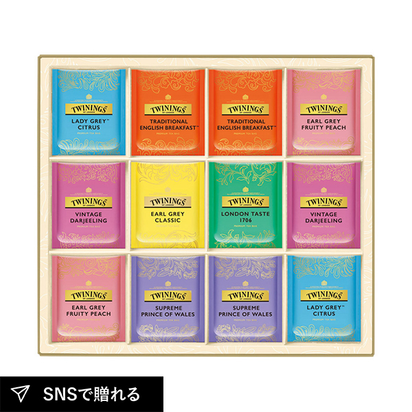 英国の気品を伝える、トワイニングのこだわりが詰まったティーバッグギフト。卓越した独自のブレンド技術から生まれた自信作です。有名産地の紅茶から、世界中で広く支持されるオリジナルブレンドまで、人気の高いフレーバーを豊かに詰合せました。