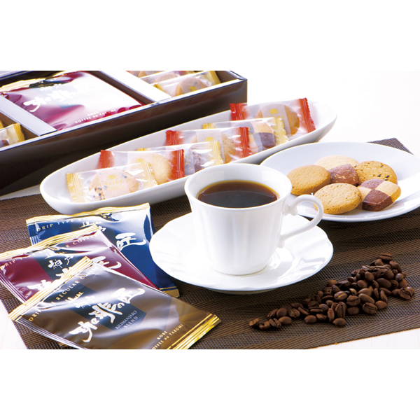 神戸珈琲の匠が丁寧に仕上げたオリジナルブレンドの簡易ドリップコーヒーと、コーヒーによく合うクッキーの詰合せです。洋菓子の街として知られる神戸から、香りと甘さのバランスを大切にしたコーヒーとお菓子をお届け。贈答用にも安心して選べるセットです。
