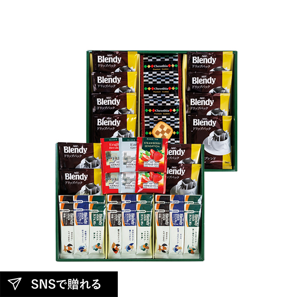 本格的な味わいのAGFドリップコーヒーと、手軽に楽しめるスティックコーヒーを中心に、クッキーや紅茶を詰め合わせたギフトセットです。複数のアイテムが入っているため、好みが分かれにくく、贈る相手を選ばないのも魅力。幅広いシーンで活躍する安心感のある詰合せです。