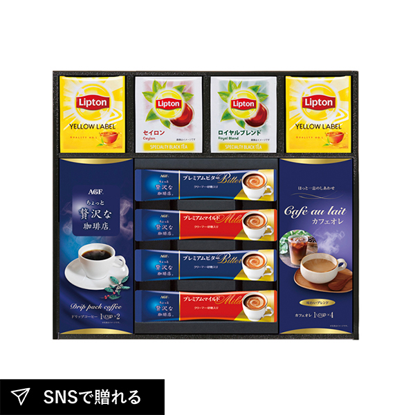 AGFのこだわり珈琲とリプトンの紅茶をセットにしたギフト。おうちカフェでゆったり味わえるひとときは、贈る相手の笑顔を引き出し、心温まる時間を演出します。香り高く、珈琲も紅茶も楽しめるため、誰に贈っても喜ばれる贅沢なギフトです。