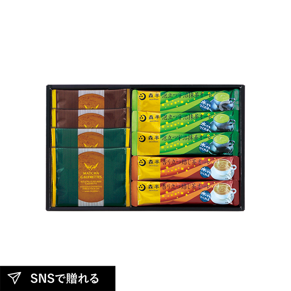 宇治抹茶と焙じ茶の豊かな香りを楽しめるオーレに、サクッと軽やかな食感のゴーフレットを詰め合わせました。ゴーフレットには抹茶とチョコレート、2種のクリームをサンドし、味わいの変化も楽しめます。和の風味と洋菓子のバランスが心地よく、家族や友人が集うカフェタイムにぴったりの上品なスイーツギフトです。