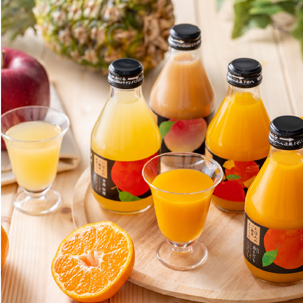 にほん全国各地で育った果物の中から厳選し、砂糖・着色料を使用せず、果物の甘みと酸味と香りを味わえるよう、何度もテイスティングを重ねて仕上げたジュースです。飲んでからだのすみずみまで気持ちよく潤える、一日の始まりにぜひお勧めしたいジュースです。