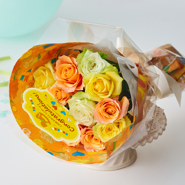 | お任せバラ(ビタミンカラー系)×12本、栄養剤10ml(50倍希釈タイプ)、お手入れのしおり付き ※オレンジ・イエロー・グリーン系の品種より選定し組み合わせます。 ※写真の使用品種は一例です。 ※収穫状況により使用品種は変わりますのでご了承ください。 ※1品種2本以上の使用もございます。 ※写真は開花時のイメージです。 ※植物につき、色・形・大きさに個体差がある場合がございます。 ※メーカーの都合により、予告なくパッケージまたは商品の仕様が変更になる場合があります。 ※季節によってクール便でお届けします。 ※遠隔地・離島などお届けできない地域がございます。 |