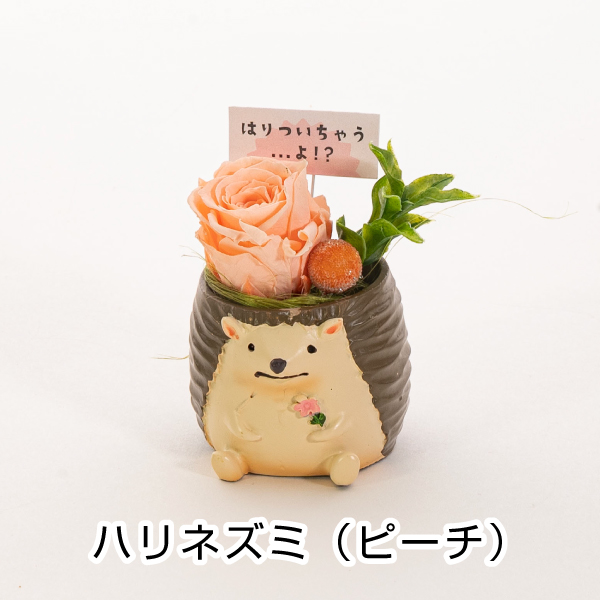 動物たちが、ぼそっとつぶやいたメッセージが添えられている可愛いフラワーギフト。クリアケース付きです。