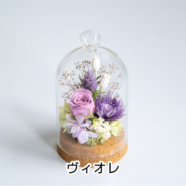 | プリザーブドフラワー:ローズ、アジサイ、カスミソウ、他 ドライフラワー、ガラス、コルク |