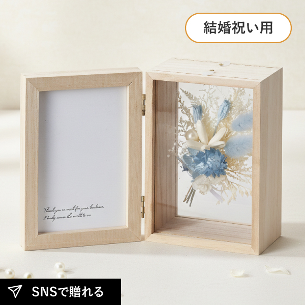 ドライフラワーとプリザーブドフラワーを美しく閉じ込めたフラワーフレーム。上質なデザインで、インテリアとして長く楽しむことができます。お祝いの気持ちが伝わるフラワーギフトです。