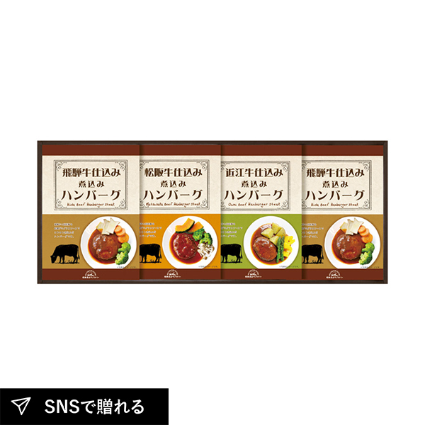 | 松阪牛仕込みハンバーグ(150g)・近江牛仕込みハンバーグ(150g)×各1、飛騨牛仕込みハンバーグ(150g)×2 |
