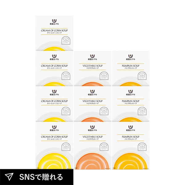 | クリームコーンスープ(160g)×4、ベジタブルスープ(160g)・パンプキンスープ(160g)×各3 |