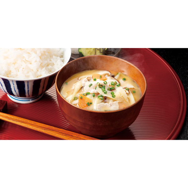 | 貝柱と三つ葉の雑炊・とりわさ風雑炊×各3、たまごスープ×2、とん汁・昆布と野菜の味噌汁・わかめと油あげの味噌汁・茄子の味噌汁×各1 |