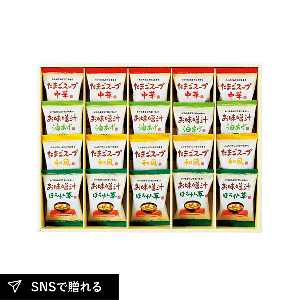 お湯を注ぐだけでおいしさそのままのお味噌汁とスープの詰合せです。