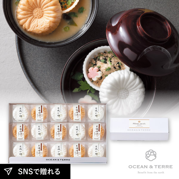 高貴で気品のある菊紋の最中に包まれた、お吸い物とお味噌汁を詰め合わせました。