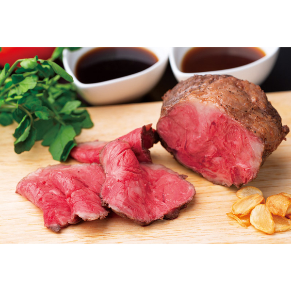 | 黒毛和牛ロースのローストビーフ(300g)・熟成ローストビーフソース(60ml)・玉ねぎわさびソース(50ml)×各1 |
