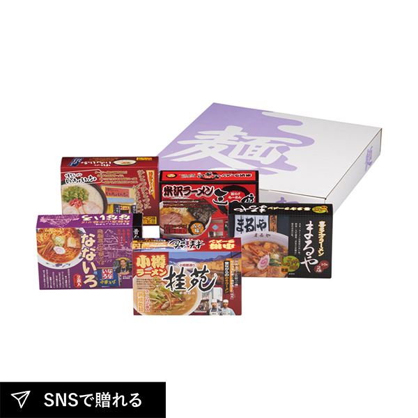 | 北海道小樽ラーメン「桂苑」味噌味(2食入)(252g)・喜多方ラーメン「まるや」醤油味(2食入)(220g)・米沢ラーメン「三男坊」味噌味(2食入)(268g)・飛騨高山ラーメン「なないろ」醤油味(2食入)(250g)・博多ラーメン「いっちょいっちょ」豚骨味(2食入)(230g)×各1 |