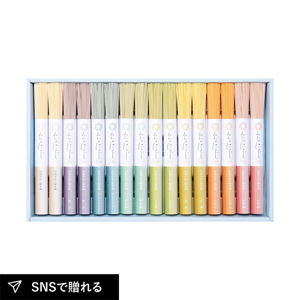 職人技が生む独特のコシとのど越しを、七色の美しい彩りに込めた手延べ素麺。トマトやよもぎなど個性豊かな味わいが揃い、食卓に彩りと華やぎを添える、ギフトに最適な一品です。